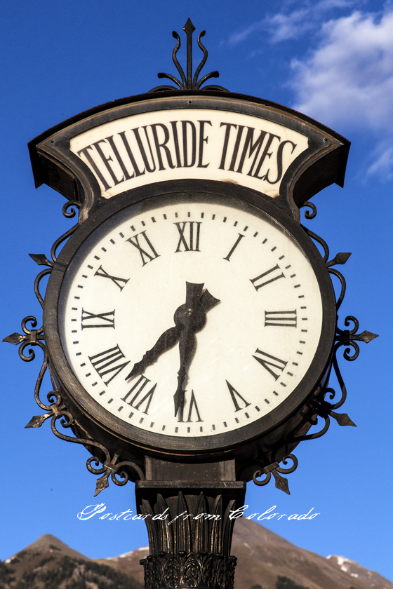 June 2, 2012 Date: June 2, 2012Author: Postcards from Colorado Category: Colorado Tags: Art, Boulder, Clock, Colorado, Daily Life, Mountains, Nature, Photography, Photos, Spring, Telluride, Travel Post navigation ← June 1, 2012 June 3, 2012 → Share this: Share on Pinterest (Opens in new window) Pinterest Share on X (Opens in new window) X Share on Facebook (Opens in new window) Facebook Share on Tumblr (Opens in new window) Tumblr Like Loading... Related